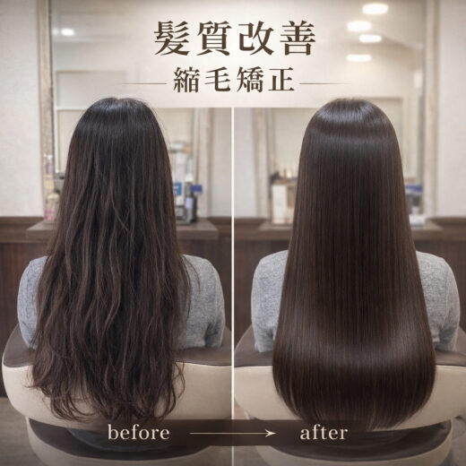 ハイライトをされるお客様が多いのですが、癖や広がりがある髪質の方はまとまりを出した縮毛矯正やトリートメントをされることで美しさがよりアップします