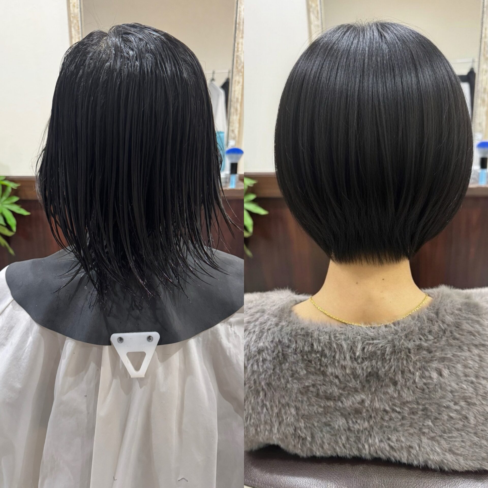Beforeの状態では、毛先が伸びて全体的にボリュームが下に溜まり、扱いづらくなっていました。湿気が出てくるこれからの季節、どうしても広がりや重さが気になってしまうタイミングですよね。
